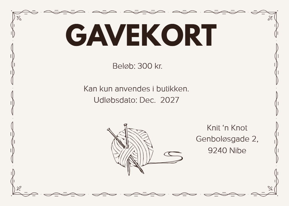 Strikkere kan være lidt besværlige at købe gaver til – så derfor er et gavekort lige sagen!!