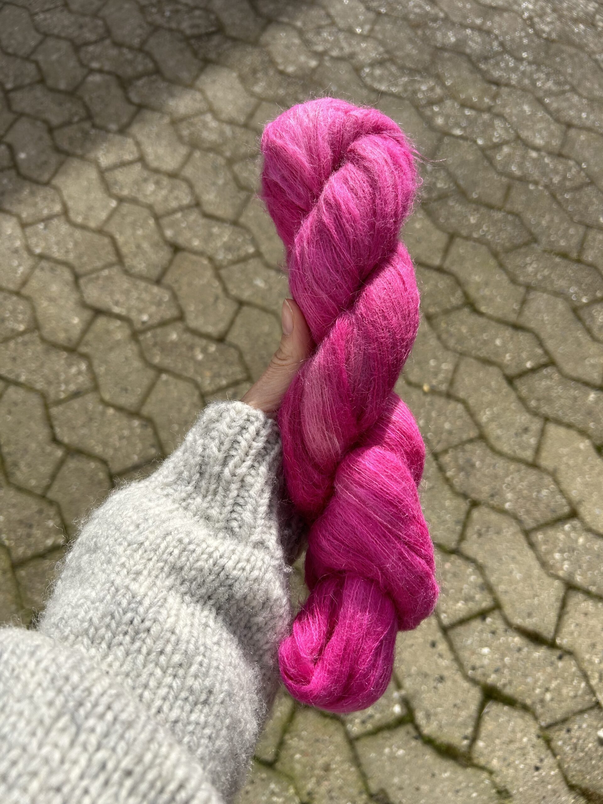 Not a Mohair er vores luksuriøst håndfarvet Baby suri (alpakka) og silke garn, perfekt til lette og luftige projekter eller som en følgetråd, hvis strikkefastheden kræver det. Not a mohair, er silkeblødt – men uden det “fæld” som man oplever med mohair garn.